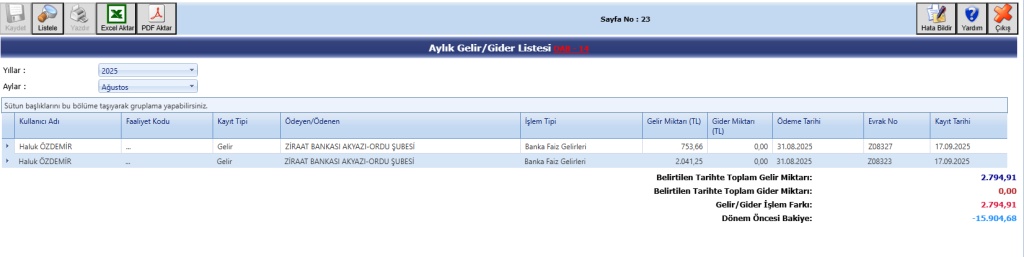 2025 AĞUSTOS AYI OKUL AİLE BİRLİĞİ GELİR GİDER TABLOSU